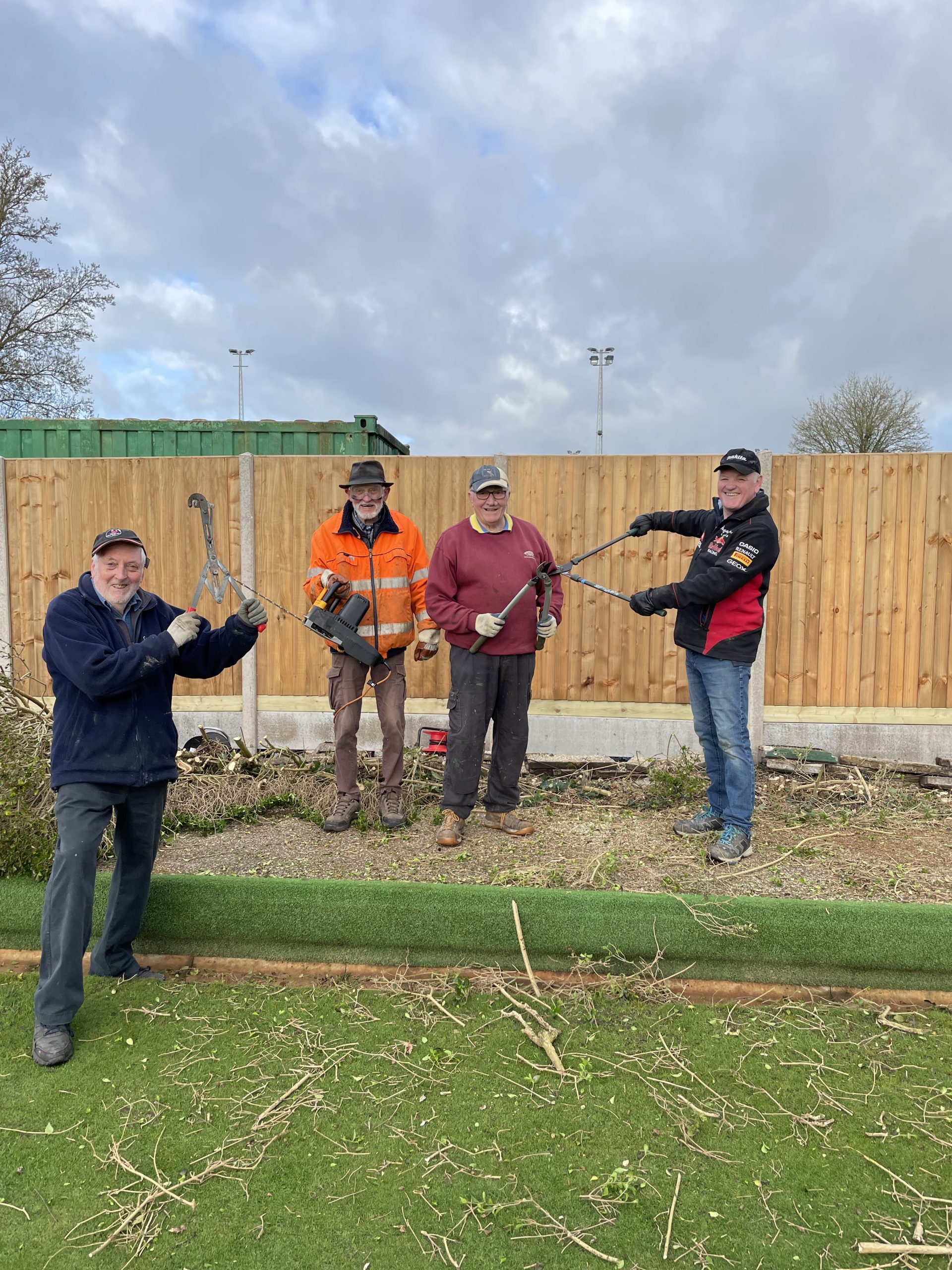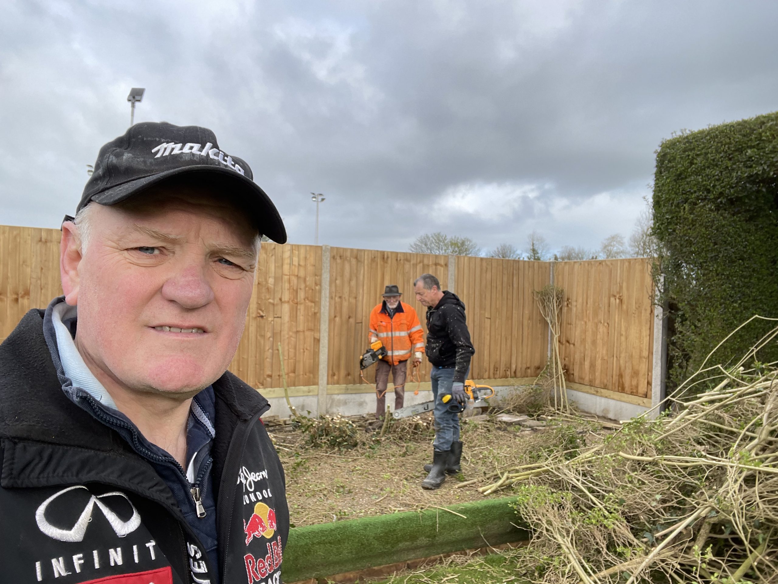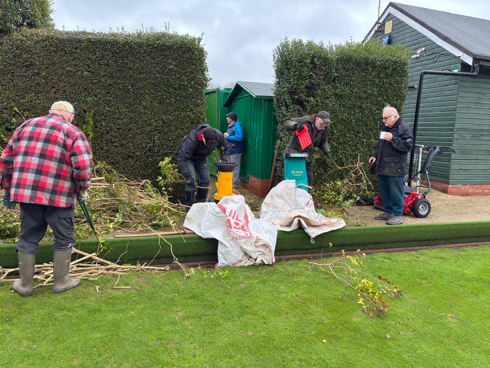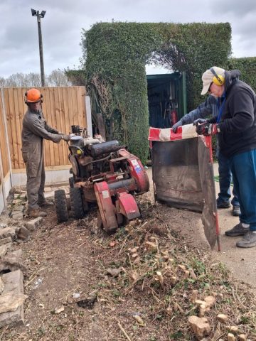 A number of club members came to help with the removal and shredding of the hedge, with much of the waste material being removed from site by Ken Greenhall and Richard Brown, to be used at the allotments in Old Stratford.