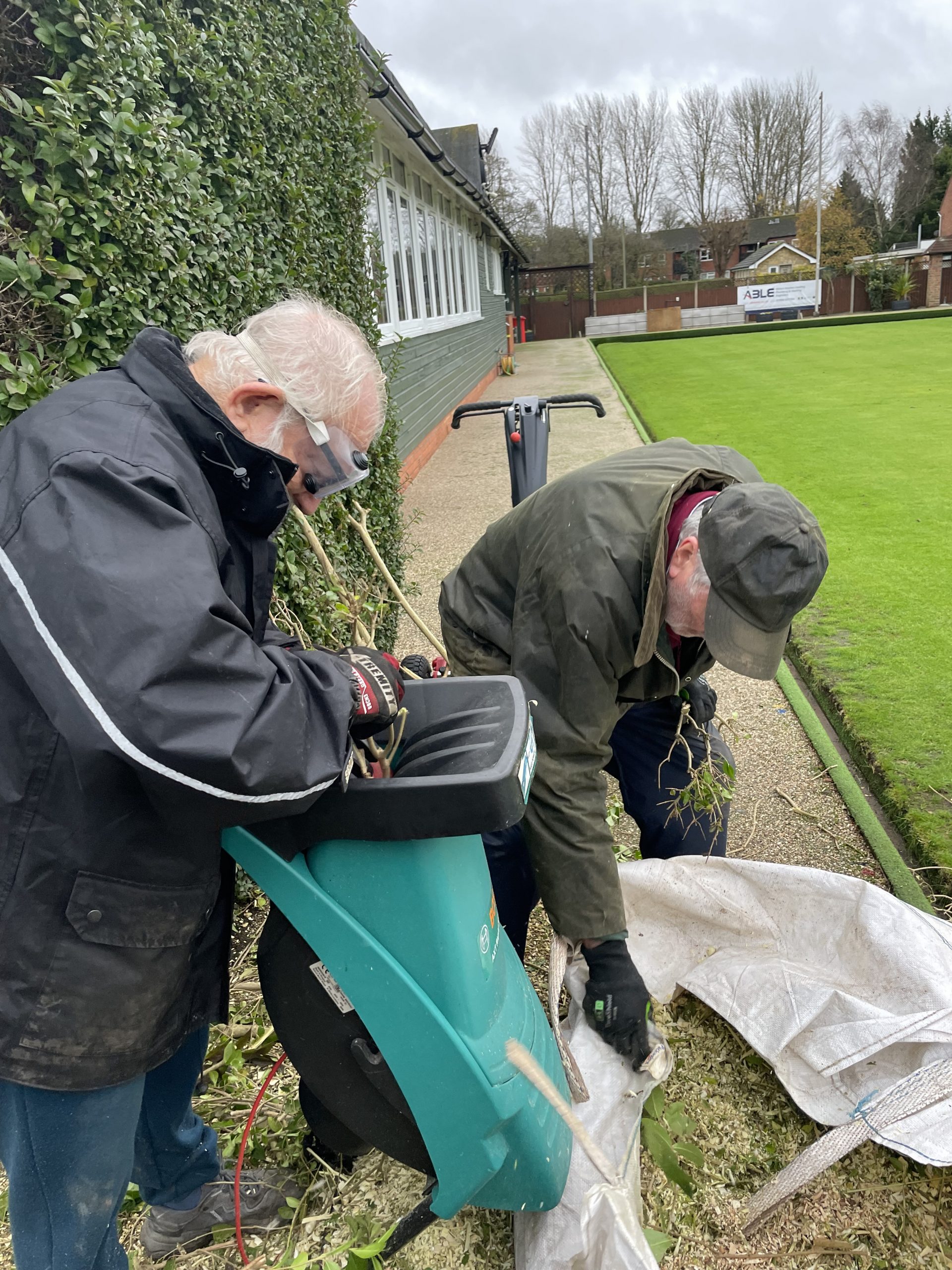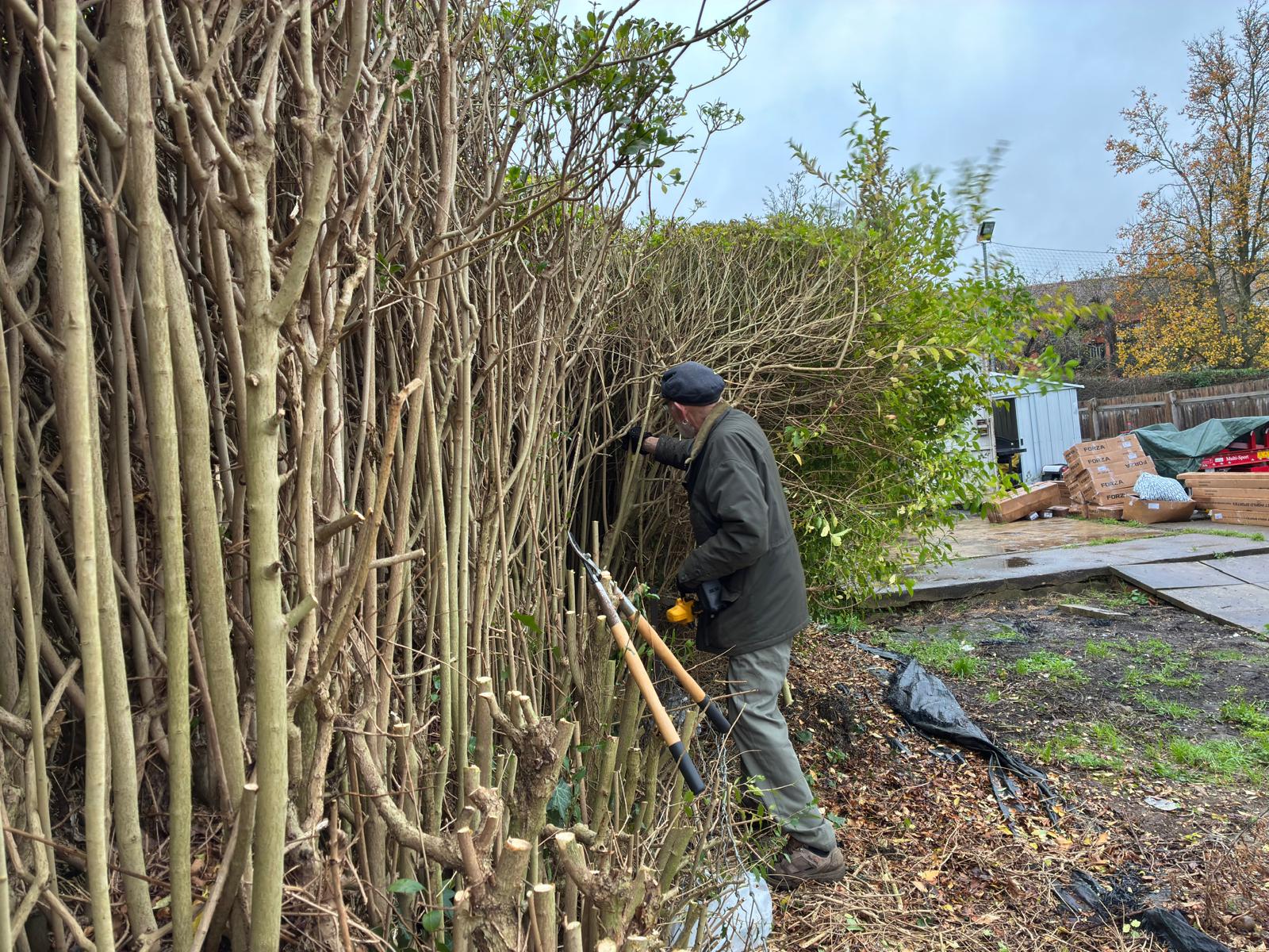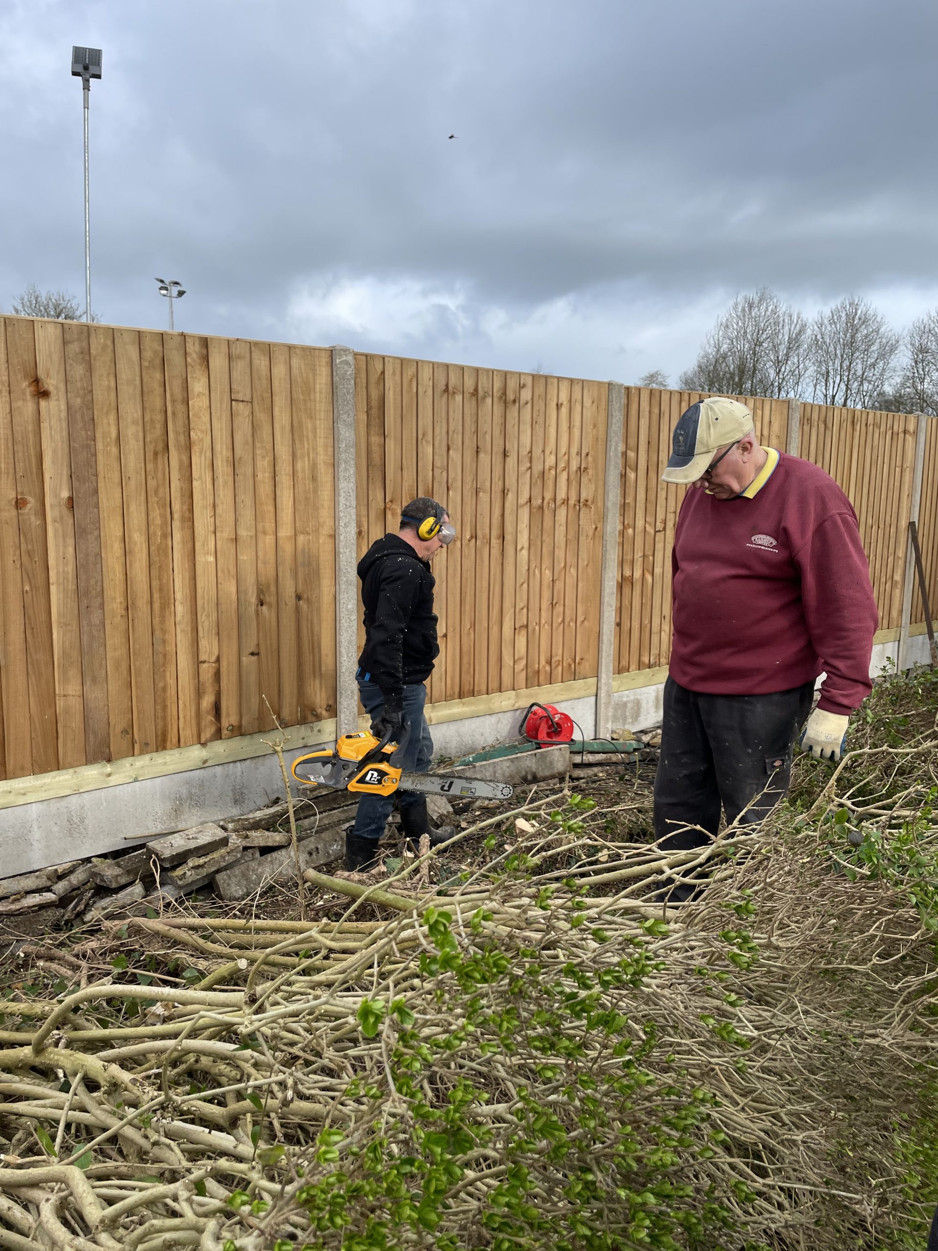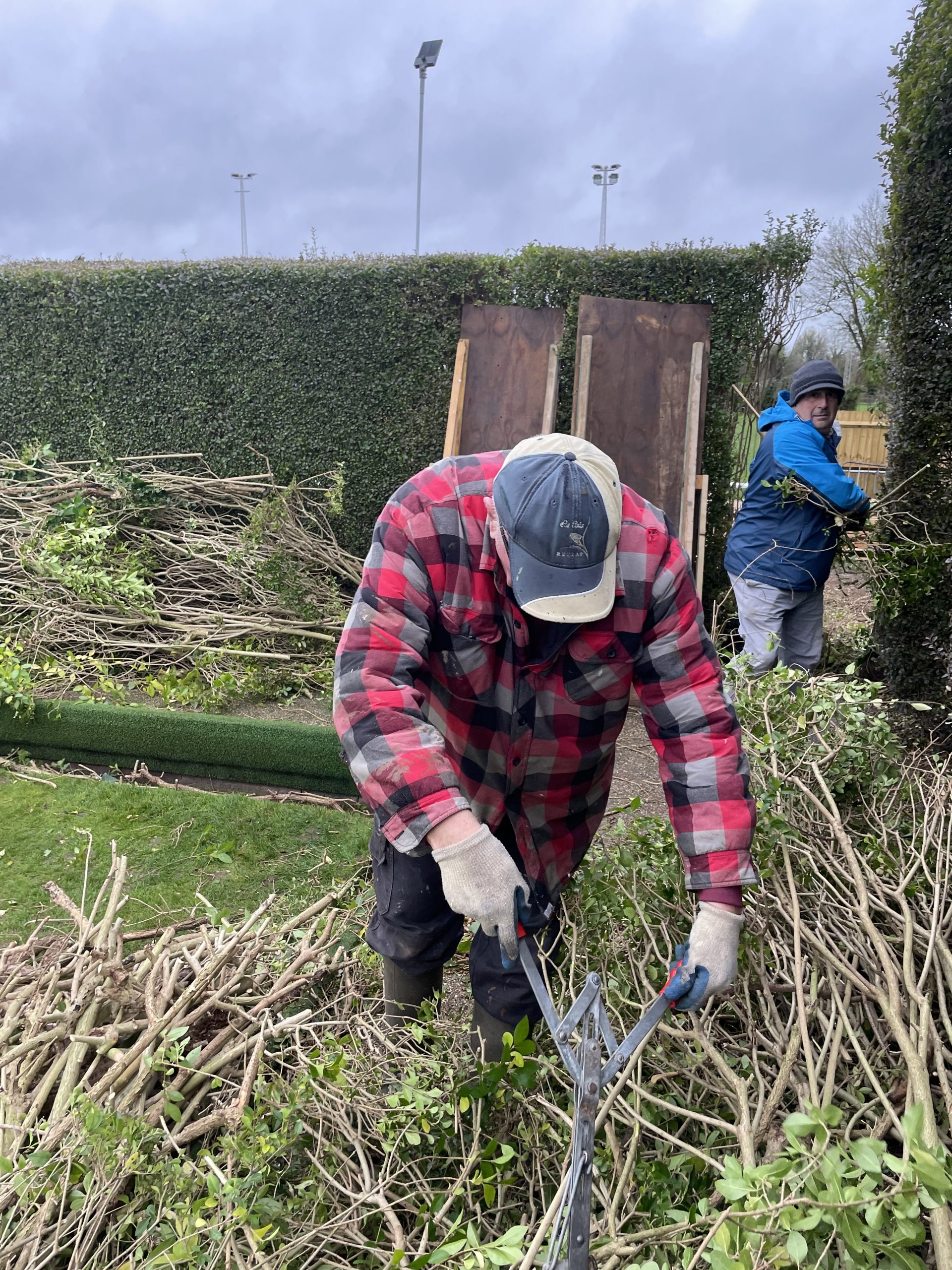 A number of club members came to help with the removal and shredding of the hedge, with much of the waste material being removed from site by Ken Greenhall and Richard Brown, to be used at the allotments in Old Stratford.
