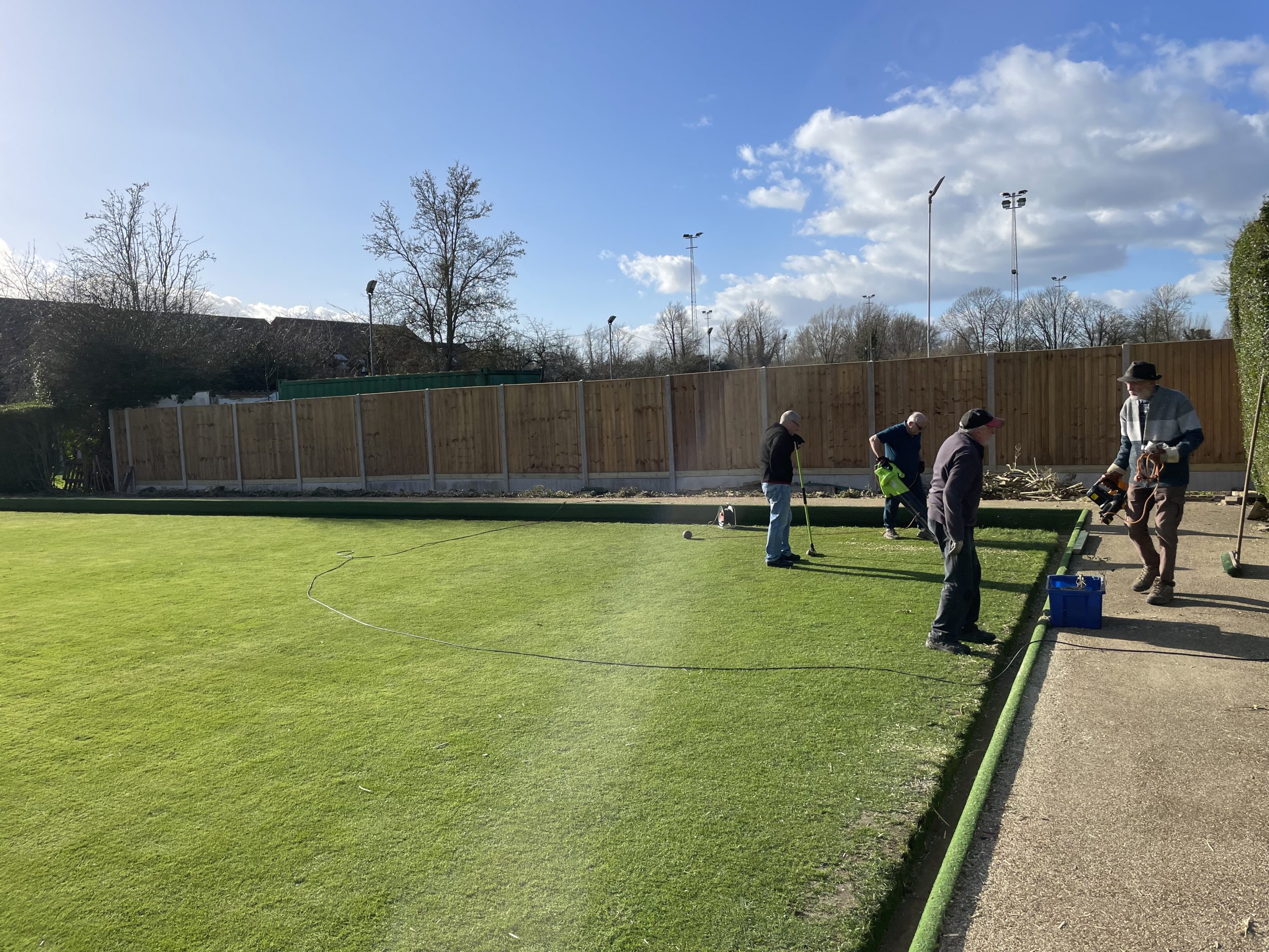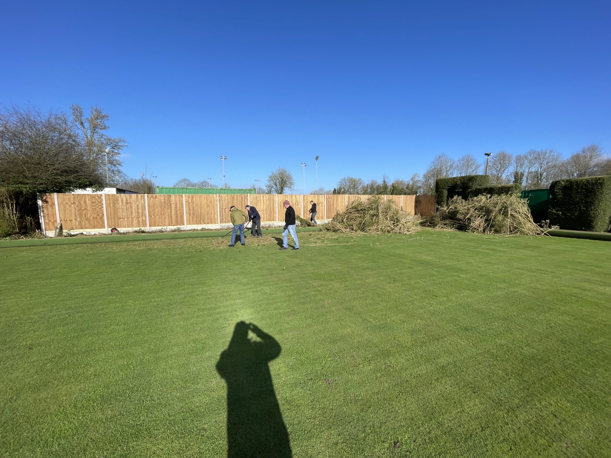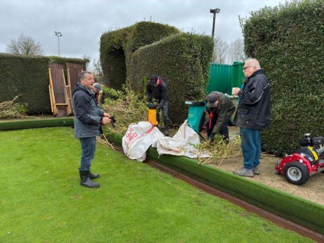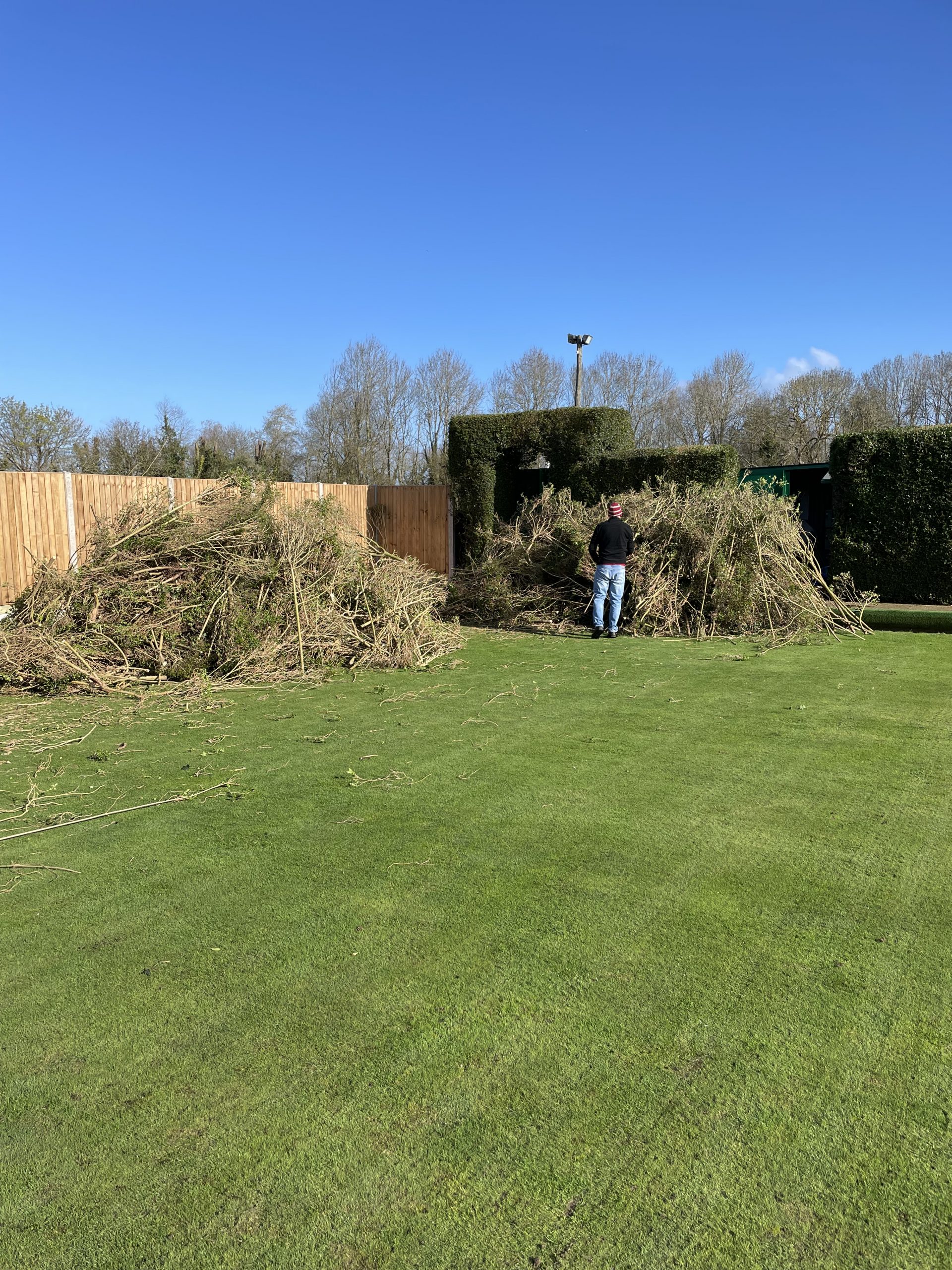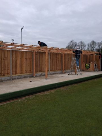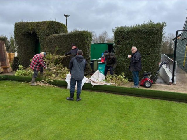 Pete Almond & John Lonergan had discussions early on with the football club over the boundary location, with a favourable outcome for the Bowls club. The position of the new fence was agreed and work began in early January to stake out the boundary and to remove the back half of the hedge in order to accommodate the new fence position.