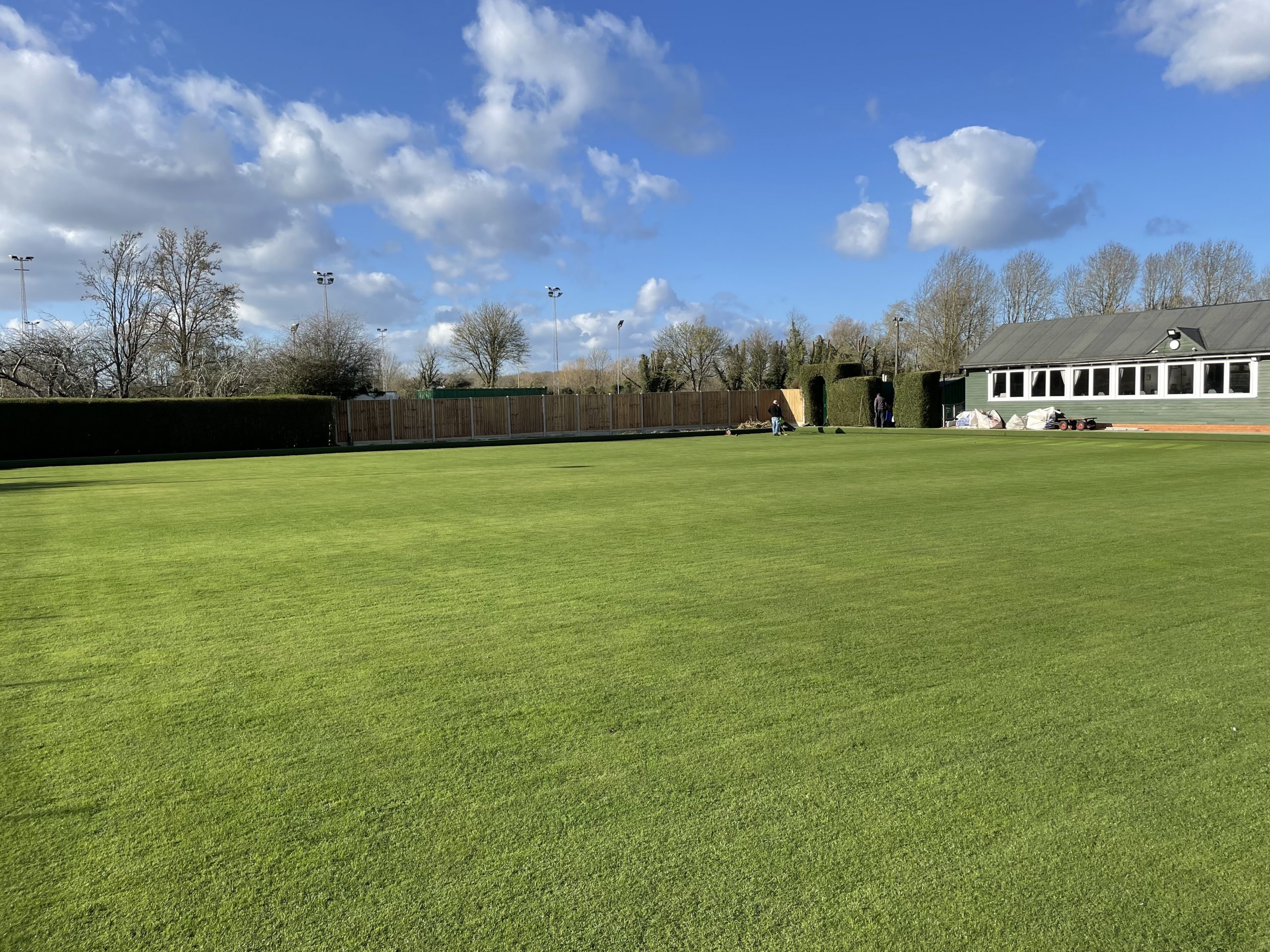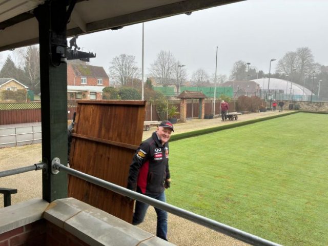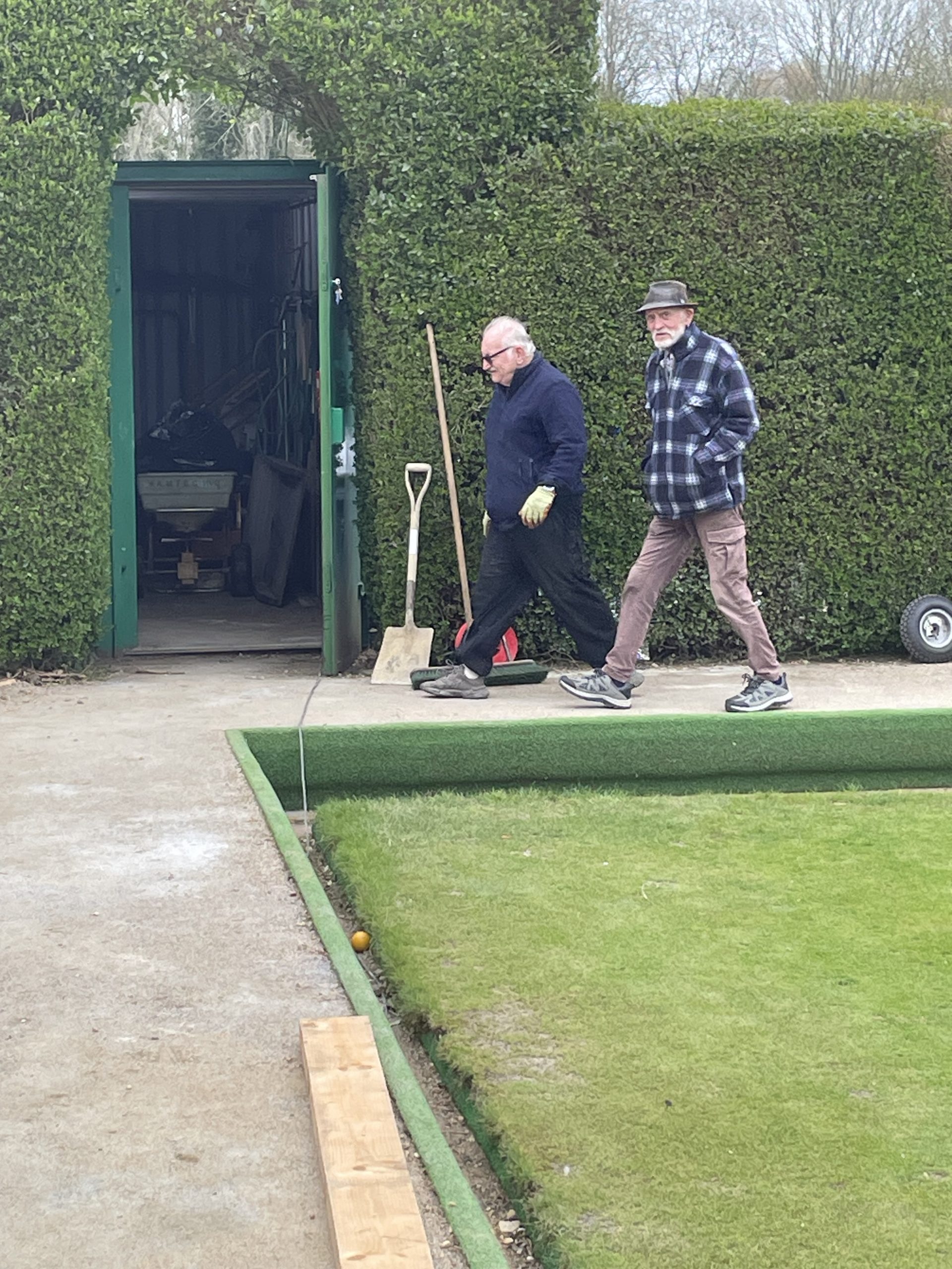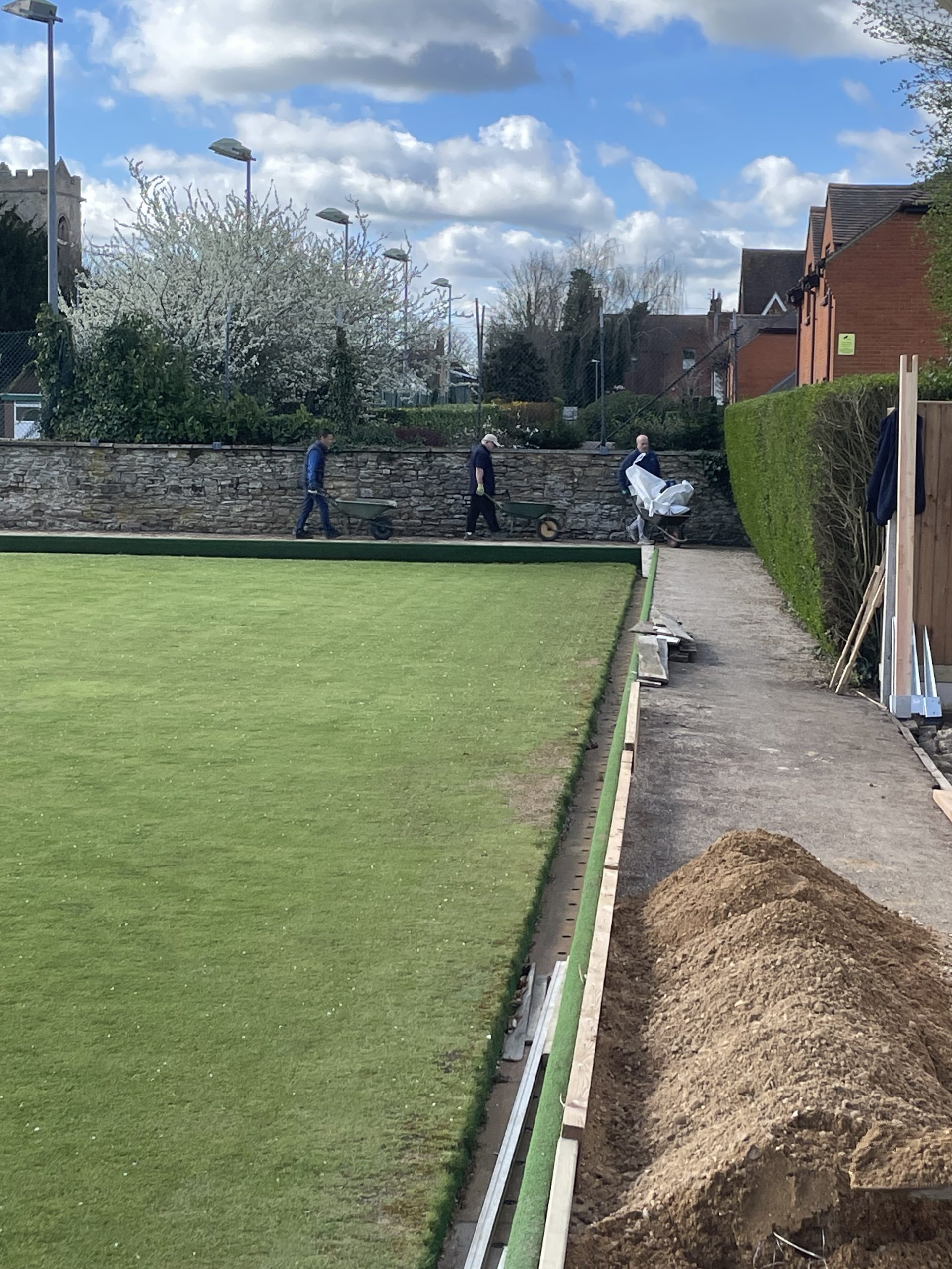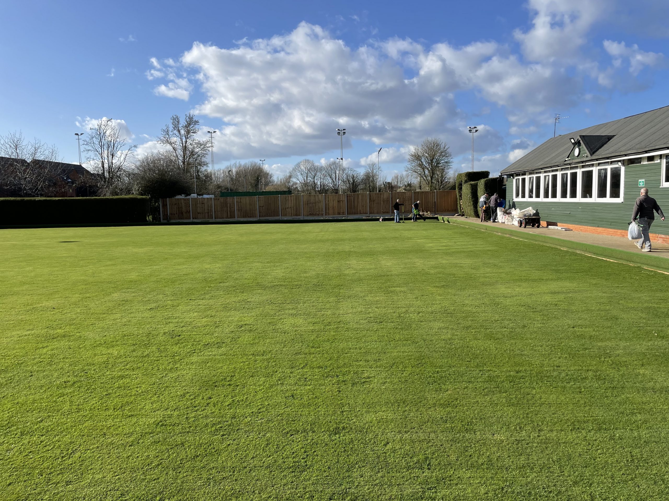 Pete Almond & John Lonergan had discussions early on with the football club over the boundary location, with a favourable outcome for the Bowls club. The position of the new fence was agreed and work began in early January to stake out the boundary and to remove the back half of the hedge in order to accommodate the new fence position.