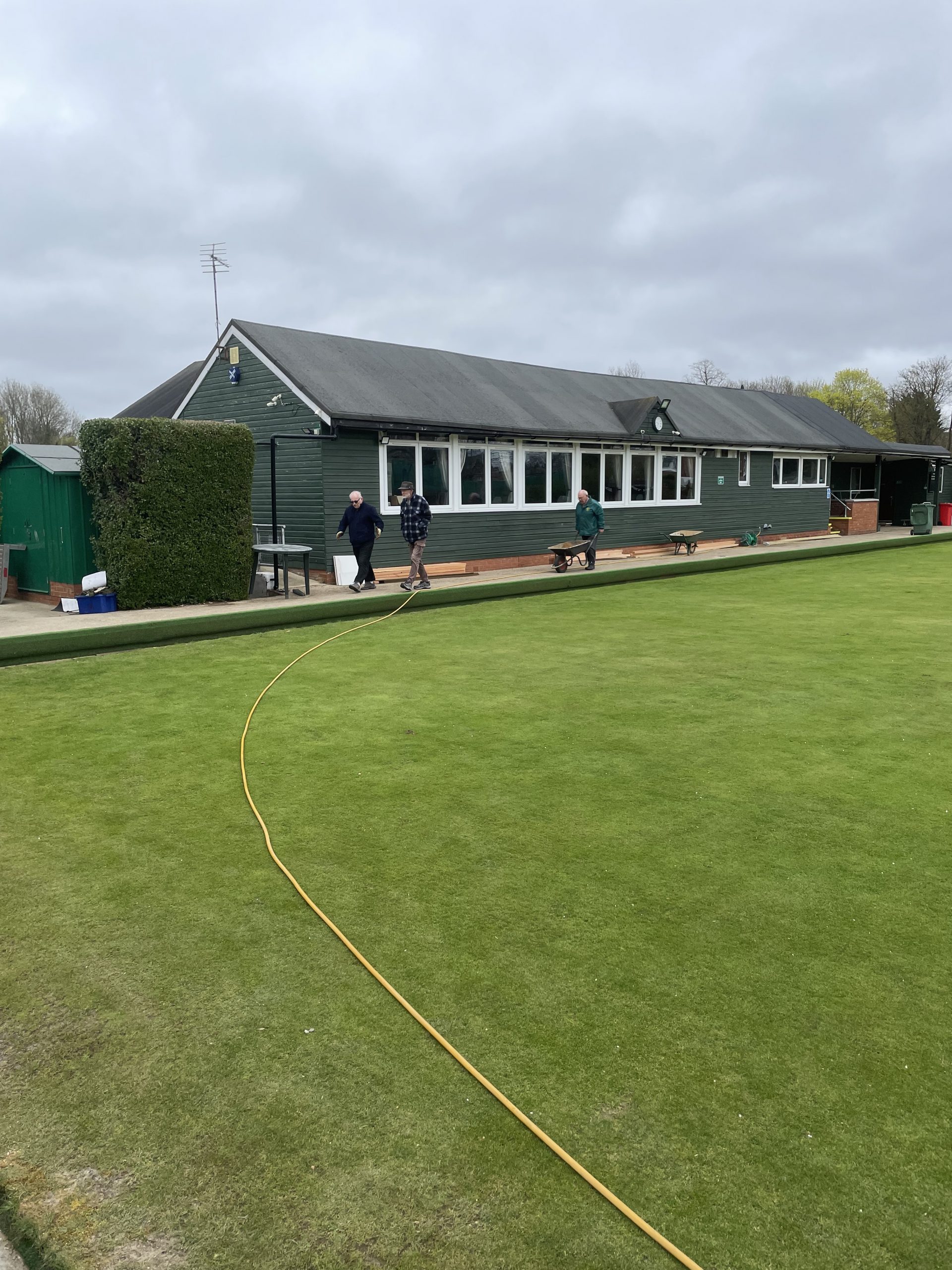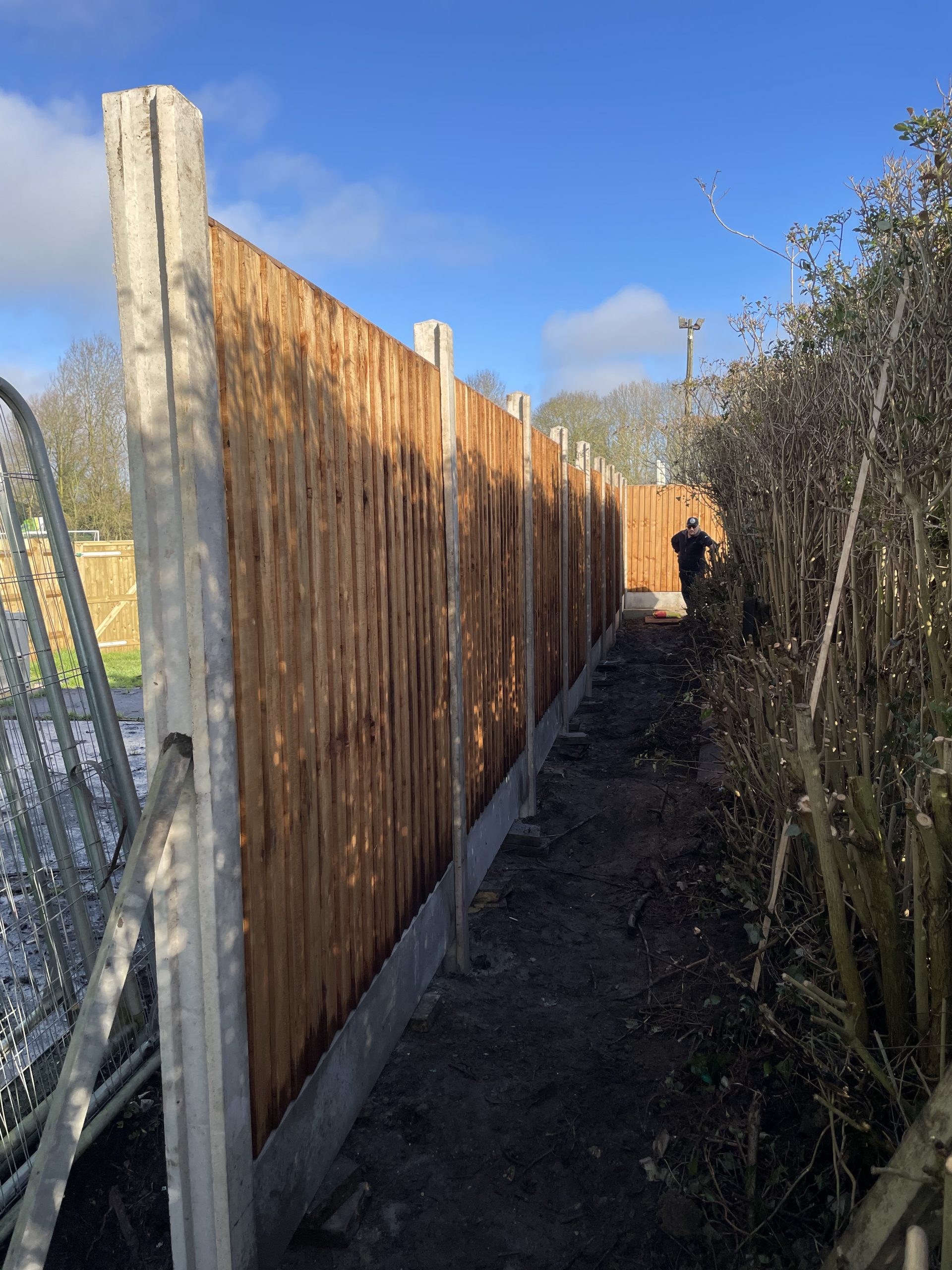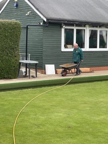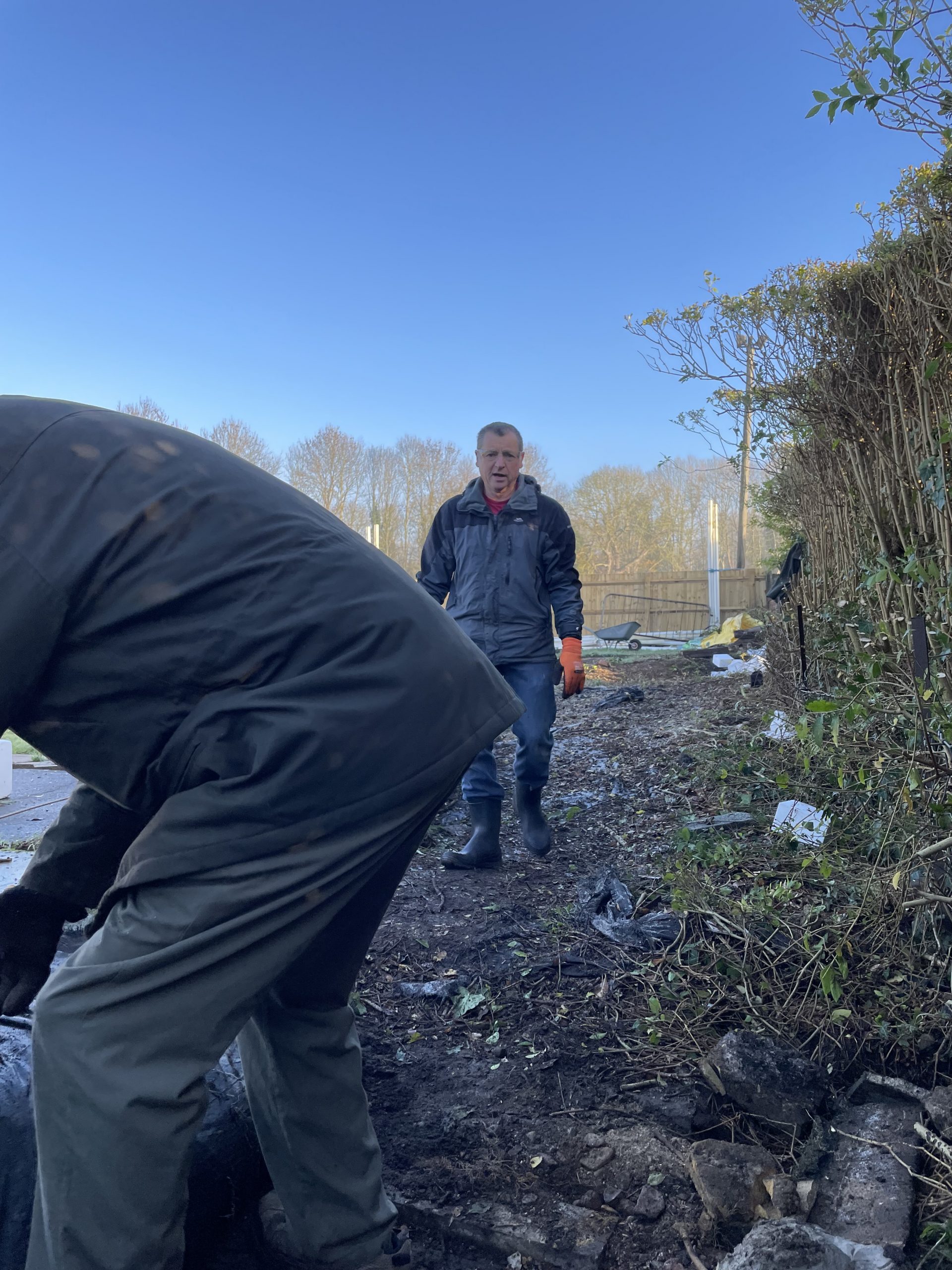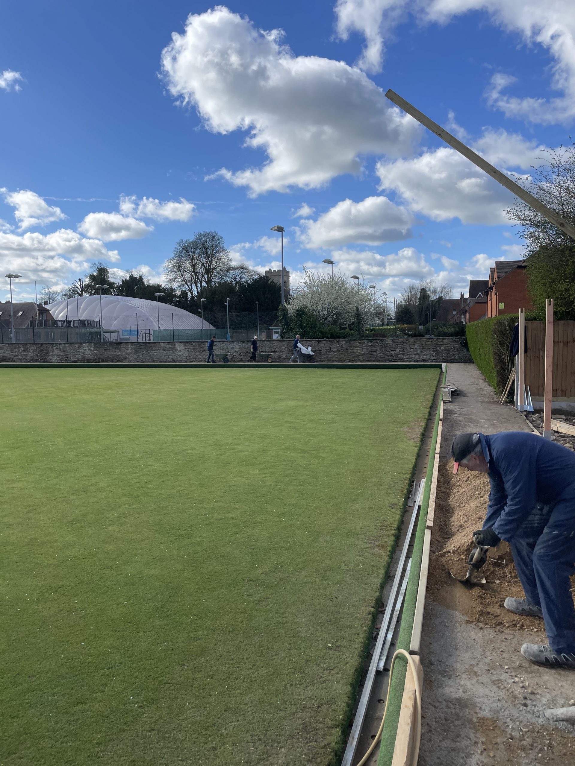 Pete Almond & John Lonergan had discussions early on with the football club over the boundary location, with a favourable outcome for the Bowls club. The position of the new fence was agreed and work began in early January to stake out the boundary and to remove the back half of the hedge in order to accommodate the new fence position.